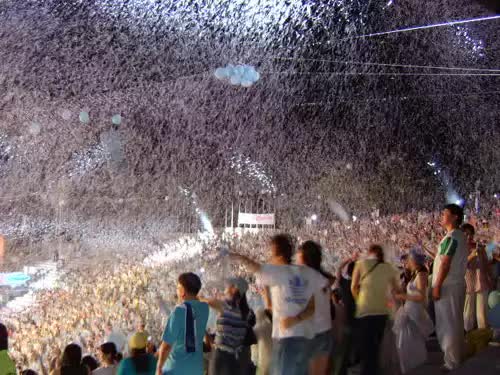 특수고압 살수차의 특수분사 노즐을 사용하여 폭6~10m 길이 최대 100m 의 야외 스텐드를 적셔줍니다.