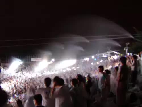 특수고압 살수차의 특수분사 노즐을 사용하여 폭6~10m 길이 최대 100m 의 야외 스텐드를 적셔줍니다.