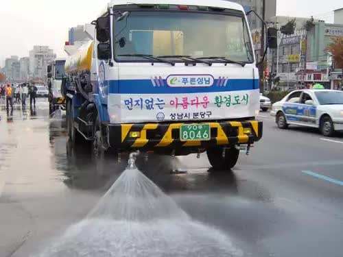 흙이 묻은 도로도 고압전멸살수, 측면살수를 이용하여 넓은 면적을 효율적으로 청소합니다.