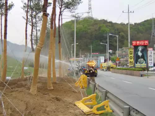조경작업에 맞게 특수제작된 살수차와 관수,살수장비를 이용하여 초화류,잔디,법면녹화,관목,소,중.대목